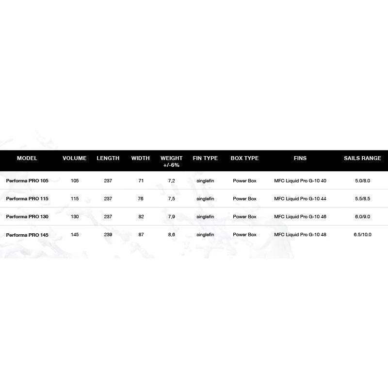 La Performa franchit les barrières de performance freeride pour révéler une gamme de planches super faciles, départ au planing précoces, empannage sans effort et offrant une excellente stabilité.