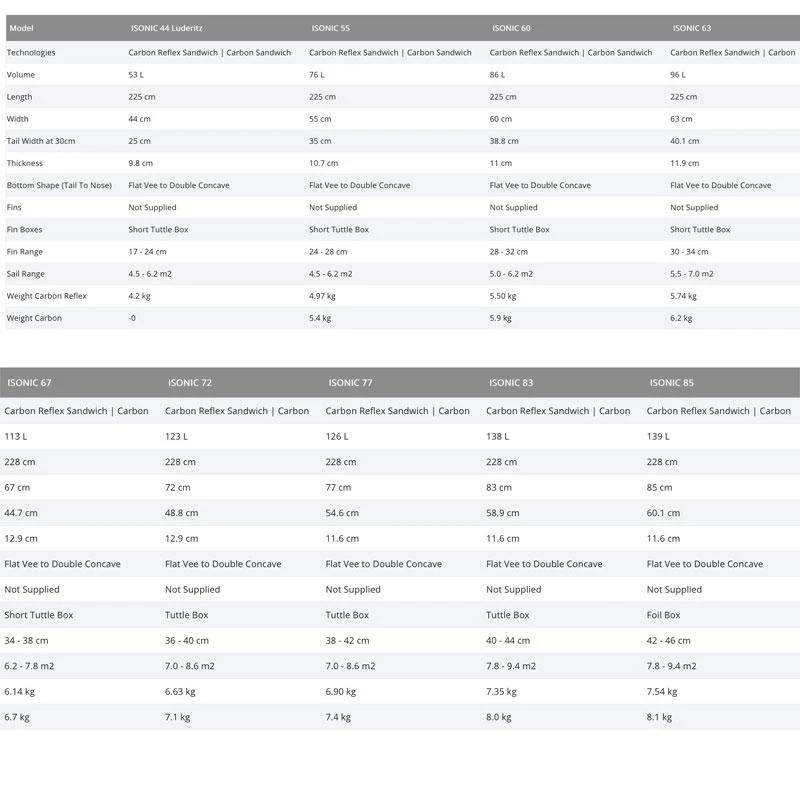 La gamme de flotteur Starboard ISonic est la gamme de course phare de la marque. Avec 12 titres mondiaux à son actif elle est remastorisée chaque année pour toujours plus de performances.