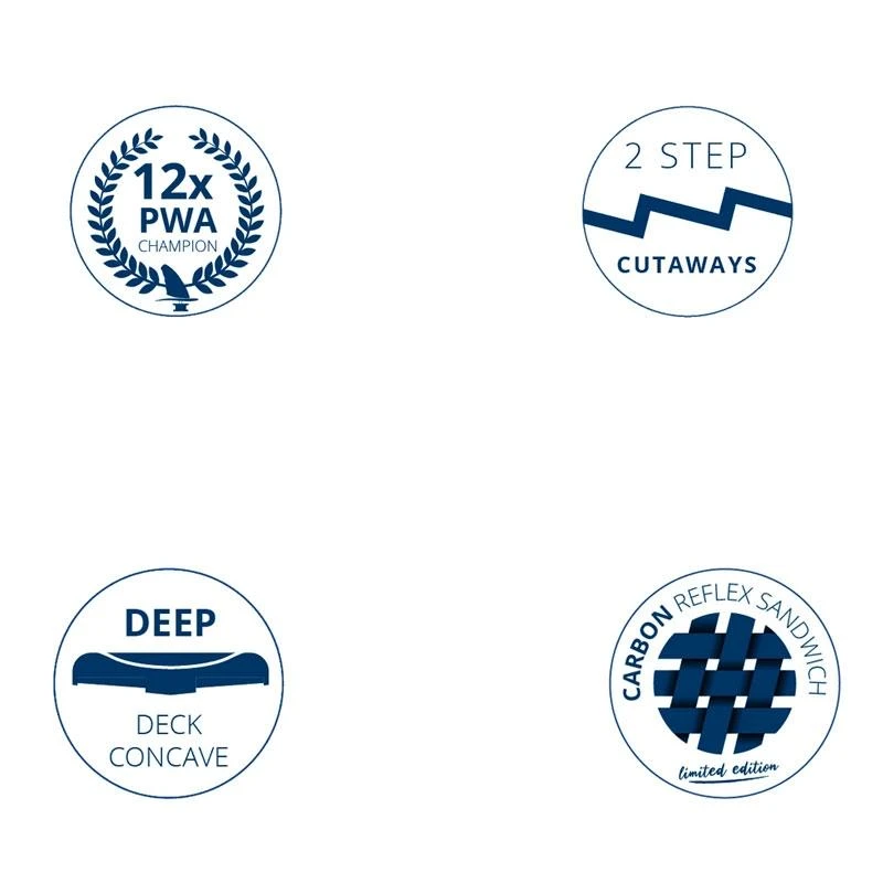 La 83 avec un shape plus large et un rocker plus doux aident la planche à partir plus facilement à des vitesses plus élevées dans des vents moyens à légers et des eaux agitées.