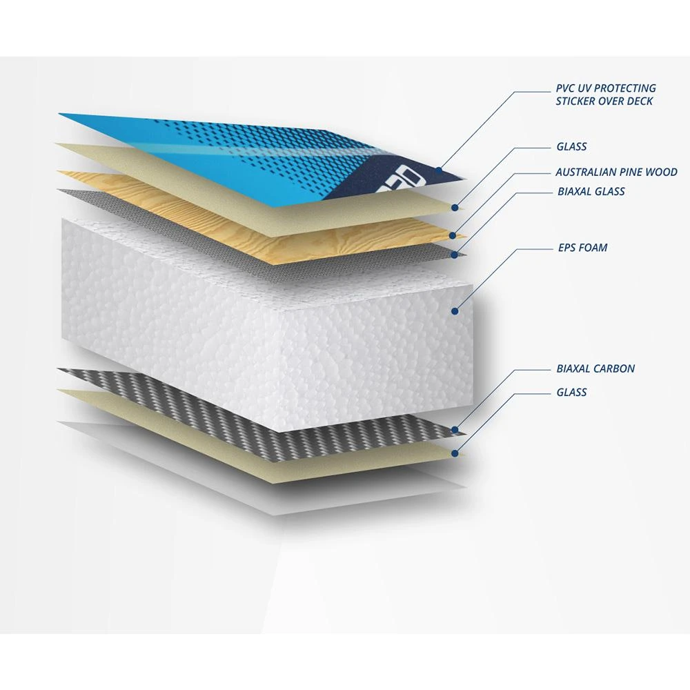 Elle conserve également le Gravity Control System avec une forme concave du pont qui crée un centre de gravité plus bas et permettra de sentir plus de contrôle dans des conditions plus difficiles et dans les jibes.