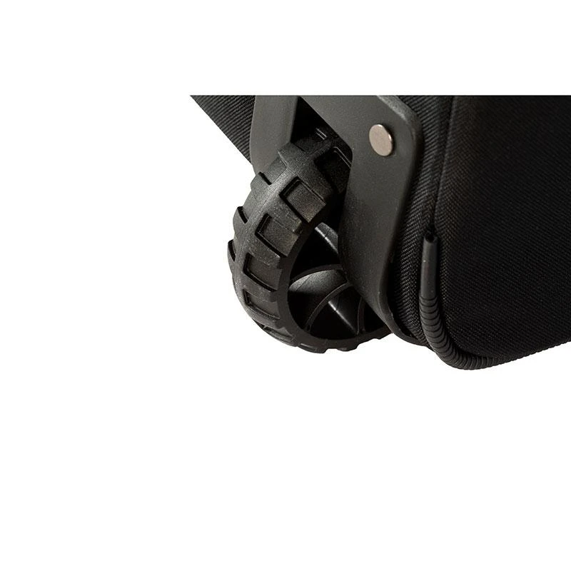Pour faciliter le transit en aéroport, elle intègre deux roulettes et une poignée de portage rembourée en partie haute.