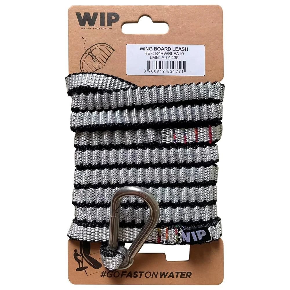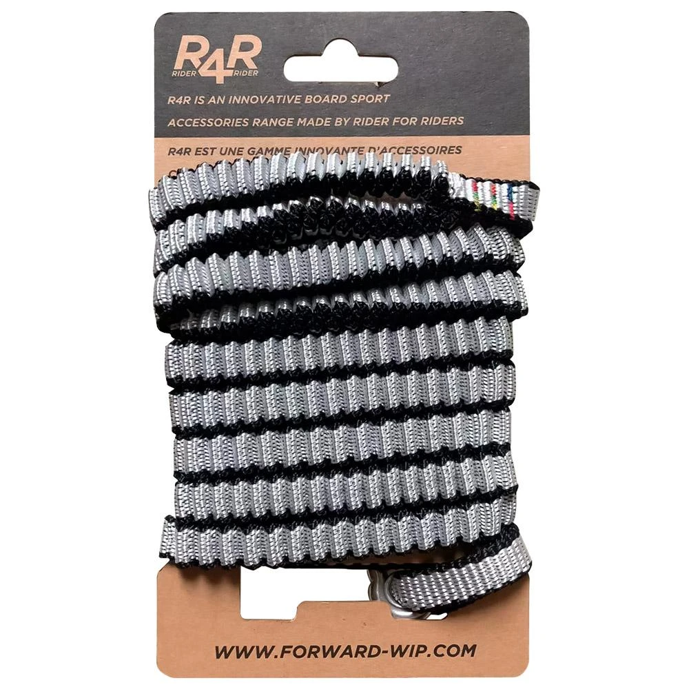 Ce leash de wing board de la marque Forward WIP est fabriqué en France. Il fait 10 mm de large et possède une grande capacité d’étirement. La double section élastique protège l’insert de la planche en cas de chute violente. Il se connecte au harnais grâce à un mousqueton en acier inoxydable.