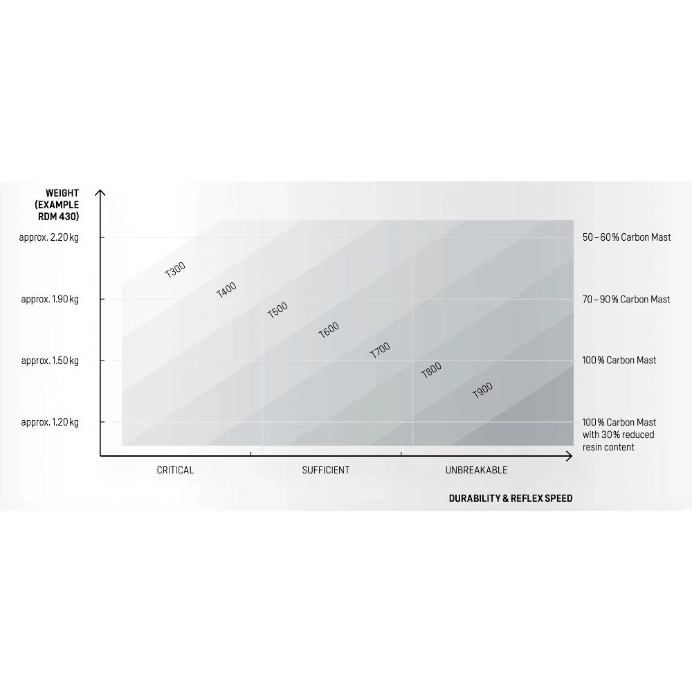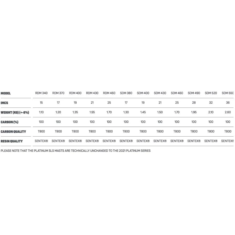 Composés de 100% de carbone, iIs ont été developpé pour les pros et ceux qui exigent le meilleur de leur matériel. Les mâts Platinum sont conçus avec technologie aérospatiale prepeg, qui offre une très grande précision et qualité.