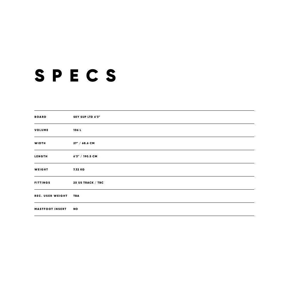 Le Sky SUP Foil Fanatic en version LTD existe seulement en 6’3′. Il bénéficie d’une construction Epoxy avec un coeur EPS laminé avec de la fibre de verre posées à 90° et des renforts bois. La construction du LTD offre offre un ratio poids/rigidité/flex optimal.