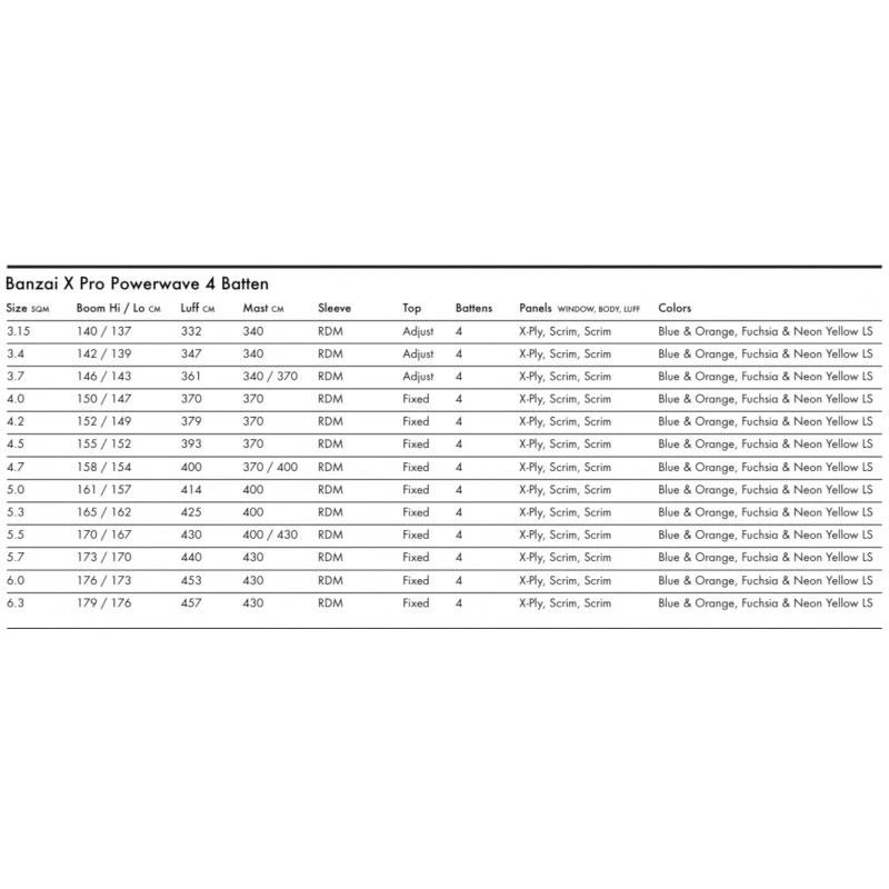 La Banzaï X Pro Goya est une voile 4 lattes. Elle est construite avec des panneaux en film X-Ply. Il fait le même poids que le Bi-Ply mais offre une meilleure résistance aux déchirures. Il est tramé avec un fil ultra résistant. Il contient égalemnet un filtre anti UV. Si vous recherchez une voile extrêmement durable, c’est la Banzaï X qu’il vous faut !